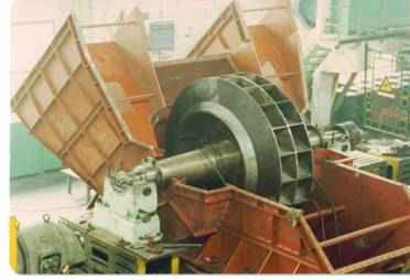 冶炼用的矿石在冶炼之前对矿石要进行烧结,烧结要用烧结机,而烧结炉则需用烟气主抽风机和冷却通风机,离心式鼓风机以其大风量、高负压的性能特点成为了烧结厂用主抽风机的主流选择。 根据风机在烧结系统所处的工段不同,分别称为(以陕西荣达电力耐磨设备有限公司风机型号为例):烧结主抽风机[1](SJ系列)、烧结环冷/冷却风机(SJ/AII系列)、机头/机尾除尘风机(Y4-73\G4-73系列)、烧结机点火助燃风机(9-19/9-26系列)等。 2、产品特性 烧结鼓风机作为烧结机配套的主抽烟机,其耗电量大约占烧结厂总耗电量的50%以上。又因其输送的介质为烧结烟气,含尘量大,因此,提高效率,降低能耗,加强耐磨措施,提高使用寿命,仍是烧结离心鼓风机的主要技术课题。 3、选型原则 烧结鼓风机的风量取决于烧结机的烧结面积;压力取决于烧结料层的厚度。 目前,烧结机的大型化(已可生产1000 m2的烧结机)和厚料层(已达700mm),促使烧结离心鼓风机向大风量、高负压方向发展。烧结离心鼓风机的最大流量为23000m3/min,最高压力为19620Pa,最大功率为14500kW。 由于制造工艺条件和运输条件等因素的限制,特大型烧结机配套的烧结引风机往往采用双机并联形式。 | SJ系列烧结鼓风机选型原则(行业统一) | | 规模(m2烧结) | 选用风机(系列) | 规模(m2烧结) | 选用风机(系列) | | 20-30 | SJ1800-SJ2800 | 130-160 | SJ12000-SJ16500 | | 30-36 | SJ3000-SJ3600 | 160-180 | SJ16000-SJ18500 | | 40-50 | SJ4000-SJ5500 | 200-250 | SJ10000-SJ13500 (两台并联) | | 55-75 | SJ5500-SJ7500 | 250-300 | SJ12000-SJ16000(两台并联) | | 80-90 | SJ7500-SJ10000 | 300-350 | SJ16000-SJ18500(两台并联) | | 100-130 | SJ10000-SJ15000 | 350-450 | SJ18500-SJ21000(两台并联) |